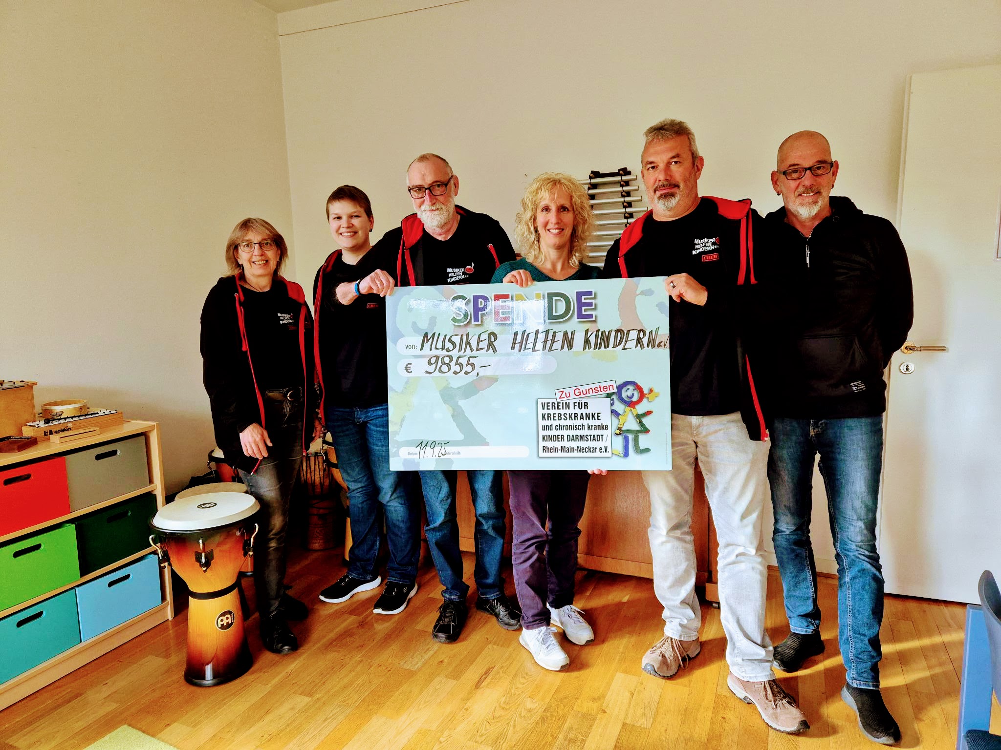 Am 11.09.2025 fand die Scheckübergabe mit der stolzen Summe von € 9855.- in den Räumlichkeiten des Vereins: „Krebskranke und chronisch kranke Kinder Darmstadt e.V.“ statt.
