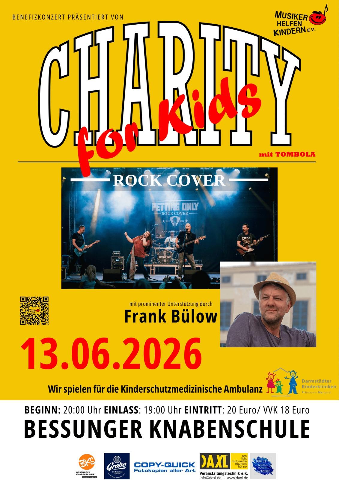 Der Verein „Musiker helfen Kindern e.V.“ veranstaltet das diesjährige Benefizkonzert am 13.06.2026, in der Bessunger Knabenschule, Ludwigshöhstraße 42, in 64285 Darmstadt.